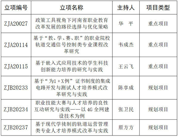 近日,河南省教育厅下发《关于2020年河南省职业教育教学改革研究与实践项目立项项目的通知》(教职成[2020]487号)文件,beat365有6个项目获得立项,其中重点项目3个、规划项目3个。