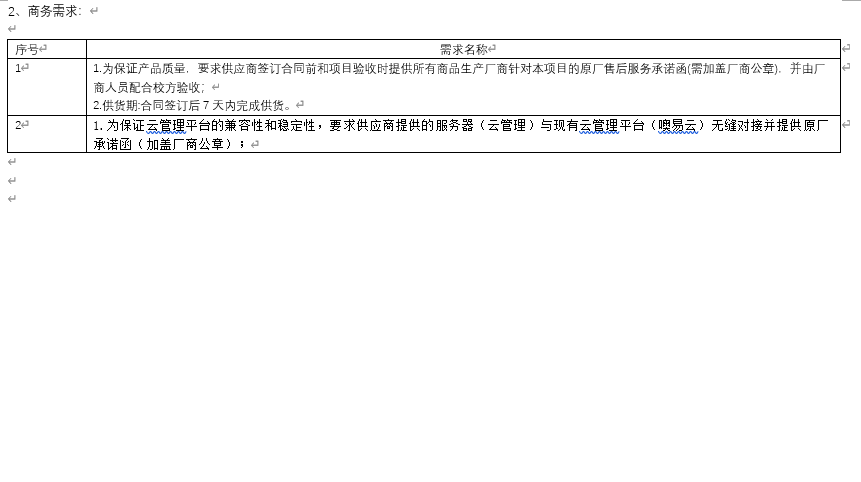 3.质量(服务)标准:符合国家或行业规定的合格标准,满足采购人技术参数和商务需求要求。