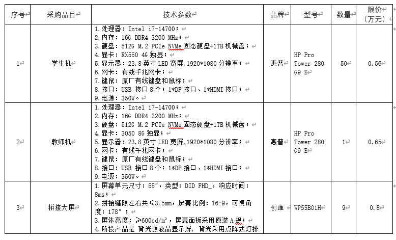 1.项目名称:新校区机房计算机及监控系统等设备更新项目部分设备采购项目
