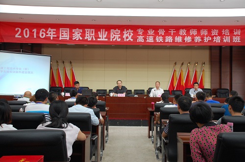 7月5日,由我系承办的2016年国家职业院校专业骨干教师师资培训——“高速铁路维修养护”项目培训班,在郑州铁路局郑州桥工段职工培训基地举行了开班仪式。beat365副校长董黎生、郑州桥工段党委书记彭伟平、建筑工程系党总支书记张勇、副主任王为林以及培训班主讲教师等出席了开班仪式。