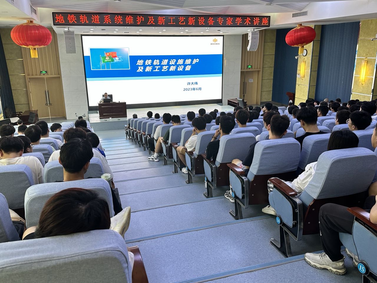 为适应新时代职业教育发展需要,加快提升学院铁道工程教师的双师能力,促进学院人才链与产业链、技术链的对接, 2023年6月20日,郑州地铁运营分公司供建中心高级工程师许大伟应学院邀请,在学校第二报告厅作“地铁轨道系统维护及新工艺新设备”的专业技术讲座,铁道工程学院300余名师生到场聆听了讲座。