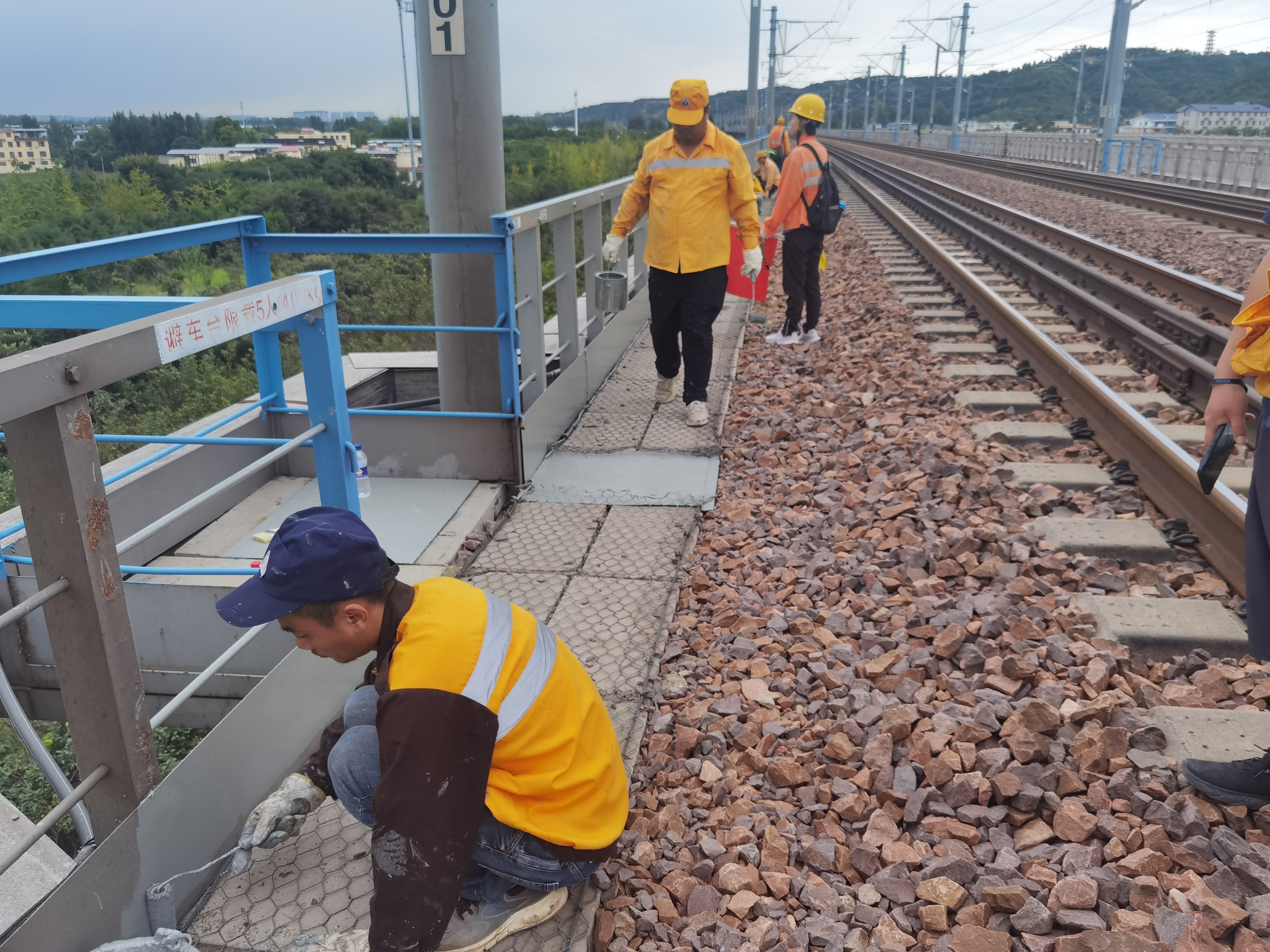 当天早上七点,在郑州铁路局京广线桥梁车间主任李立国的热情接待下,学院教师团队首先接受了详细的安全培训,并在安全员的全程引导下,严格遵守安全规程,组成了一个学习工作小组,于天窗期间进入郑焦黄河特大桥的养护现场进行实地调研考察。郑焦黄河特大桥作为连接郑州与焦作的重要交通枢纽,其桥梁结构的复杂性与养护工作的重要性不言而喻,为教师们提供了一个宝贵的学习样本。