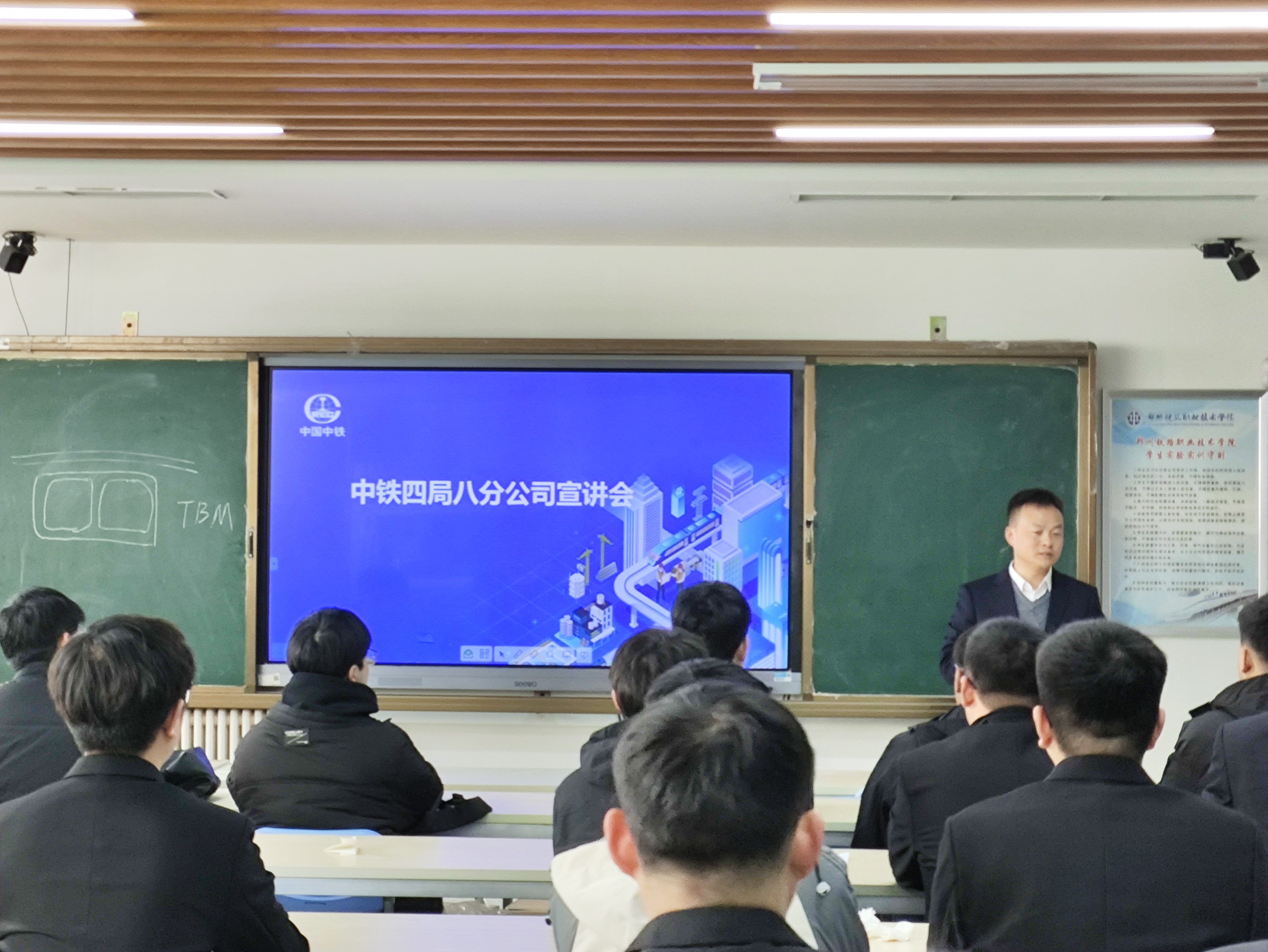 宣讲会上介绍了中铁四局八公司的发展现状、员工薪酬福利以及员工职业发展规划。公司始终秉持“人才强企”战略,视人才为企业发展的核心驱动力,希望与铁道工程学院建立长期、稳定的战略合作伙伴关系,共同探索人才培养新路径、毕业生就业安置及社会服务合作新机制,为公司的持续发展注入强劲的人才动能。