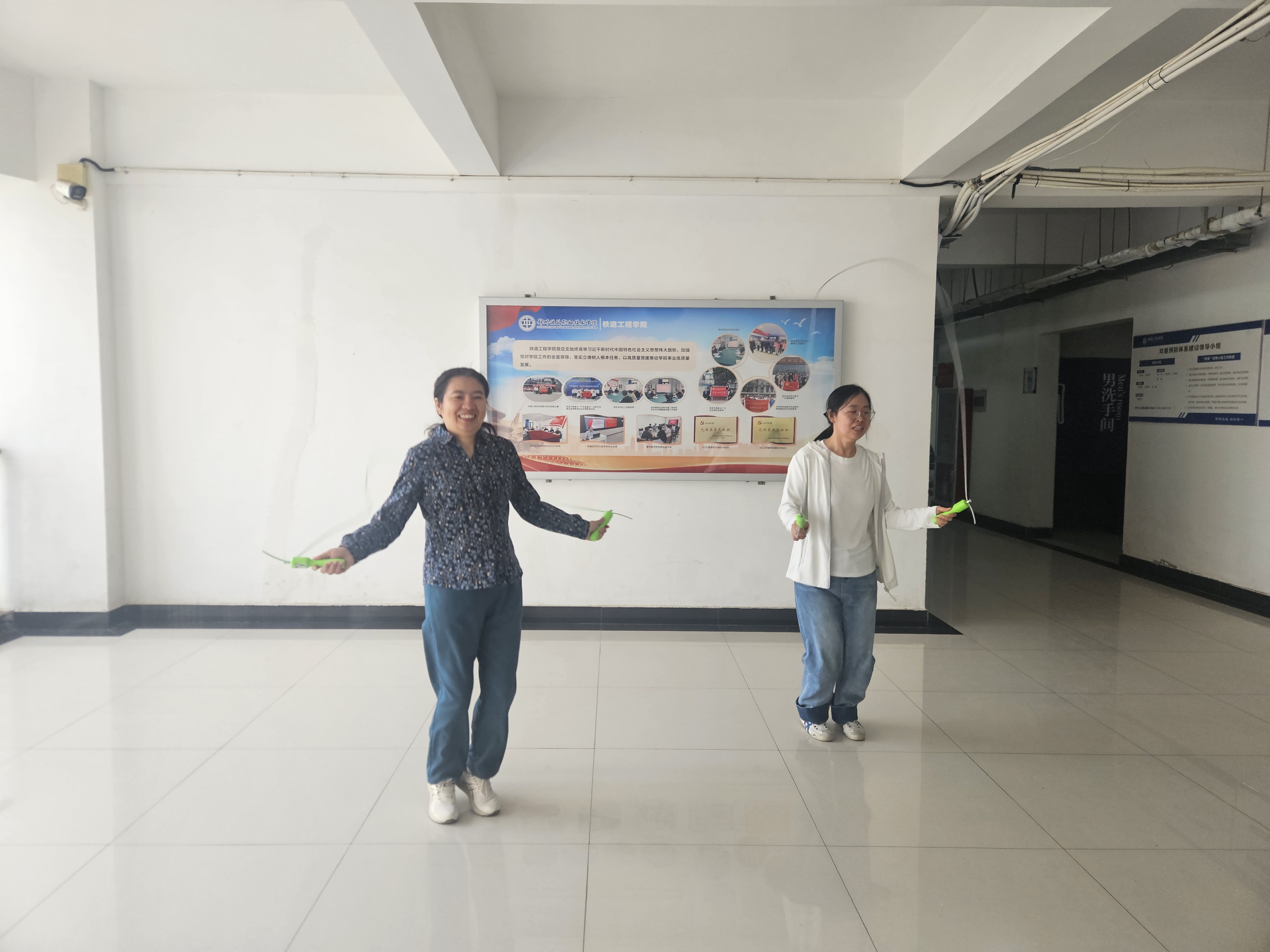 为庆祝第115 个国际妇女节,丰富学院女教职工的业余生活,倡导健康、积极的生活方式,铁道工程学院于近日成功举办了一场别开生面的跳绳活动。活动吸引了众多女教职工踊跃参与,现场气氛热烈,充满欢声笑语。