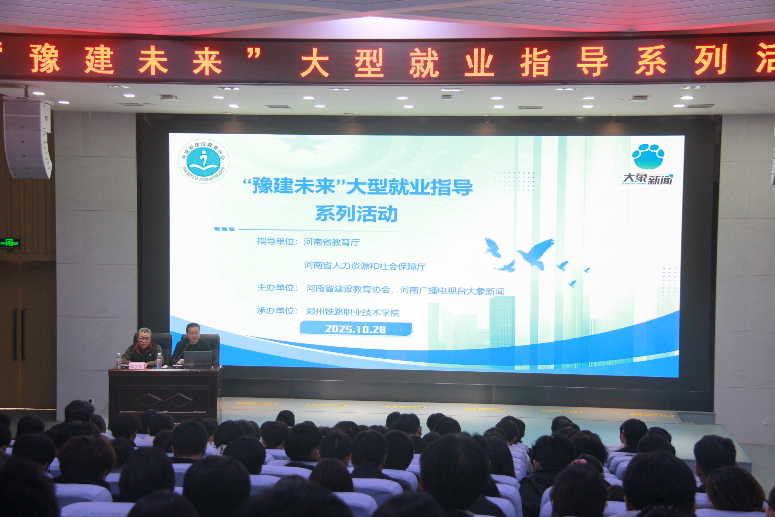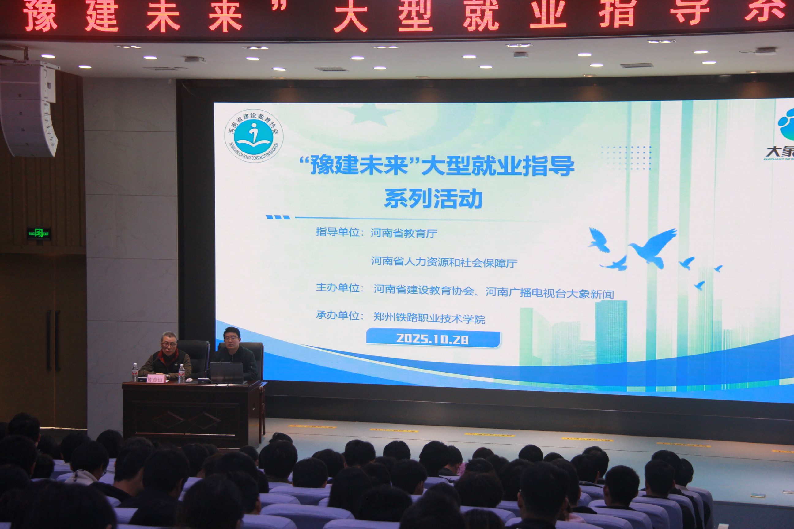 为深化产教融合、畅通就业渠道,10月28日,由河南省建设教育协会联合河南广电大象新闻及省内多家建筑骨干企业共同打造的“豫建未来”大型就业指导系列活动,走进beat365英国官方网站铁道工程学院。活动以“精准赋能就业,助力豫建未来”为主题,通过专家讲座、互动问答、现场咨询等多元化形式,为铁道工程学院建设类专业学子送上了一场兼具专业性与实用性的就业指导“盛宴”,铁道工程学院师生约300余人参加活动。