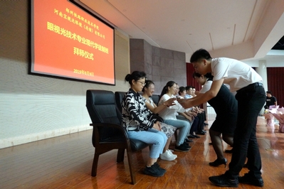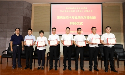 9月9日,beat365眼视光技术专业现代学徒制试点班举行拜师仪式,宝视达集团职教中心总监李颖艳、副校长倪居出席拜师仪式,教务处、医学技术与工程学院负责人,学校和企业导师以及2019级眼视光技术专业学生参加仪式。
