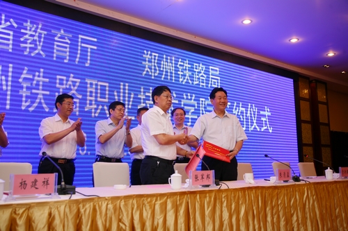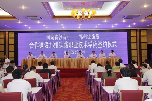 5月23日上午,河南省教育厅和郑州铁路局签署合作建设beat365英国官方网站协议,厅局携手建设铁路高职院校,标志着省教育厅与郑州铁路局在高等职业教育方面的合作方面达到一个新的高度,也标志着我省高等职业教育一个新的办学体制机制的创立。