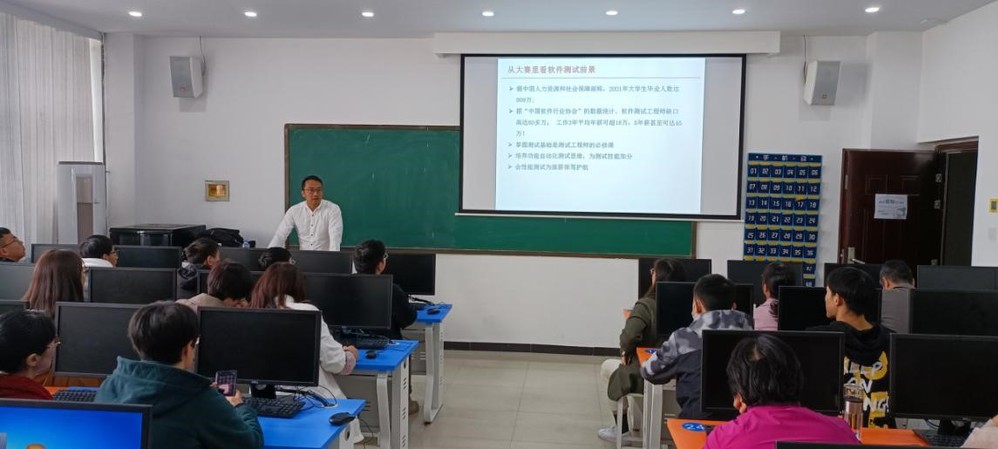 会上,钟总详细介绍了软件测试岗位人才需求、职业规划,对该专业学生未来的发展方向做出详细的分析介绍。此外,在软件测试的教学案例、培养方案、测试工具等方面做了深入讲解。同时,就软件测试方面遇到的困惑与问题,在场师生与两位工程师进行了深入探讨和交流。