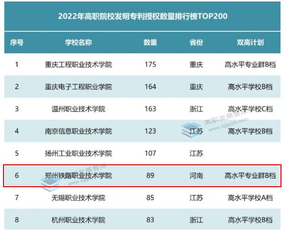 近日,高职发展智库对2022年全国高职院校发明专利授权数量进行了统计分析。2022年,全国高职院校共获得发明专利授权数6858件,较2021年增长23.3%。其中,“双高”院校共获发明专利授权3769件,校均22件。beat365发明专利授权数为89件,位居全国高职院校第六位。