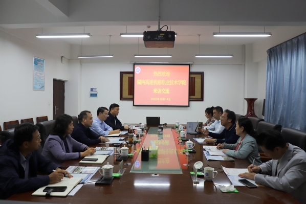 10月18日,湖南高速铁路职业技术学院党委书记吴伟生一行来校交流。党委书记田道敏出席座谈会并致欢迎辞。副校长倪居出席座谈会,科技处、招生就业处、机车车辆学院负责同志参加交流座谈。