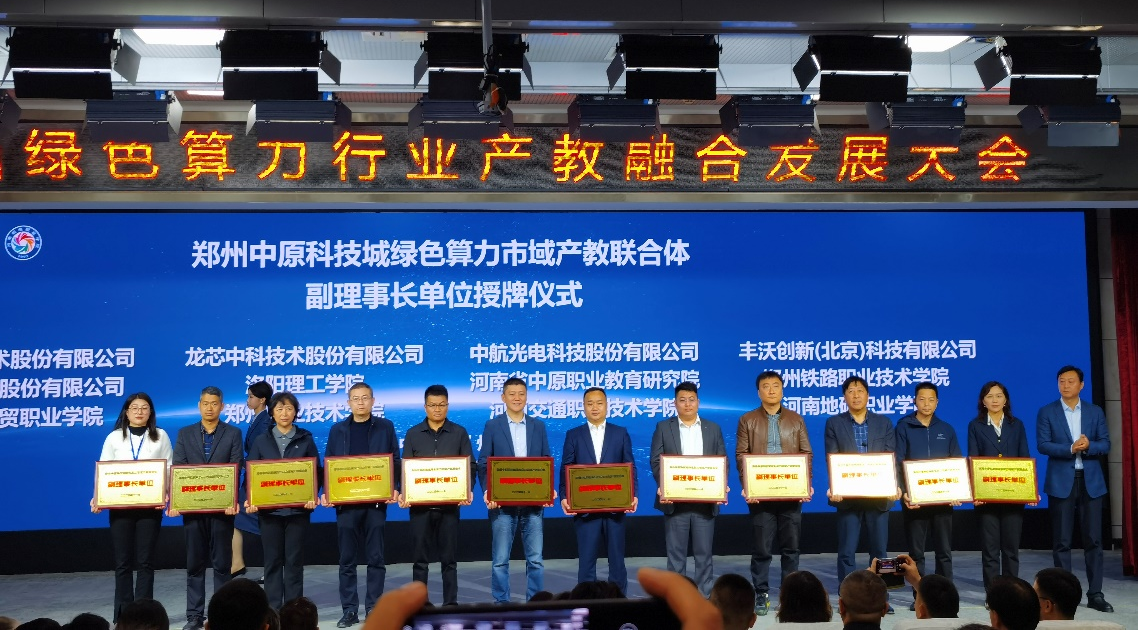2024年11月15日,全国绿色算力行业产教融合发展大会在河南机电职业学院举行,beat365应邀参加大会,会上成立了郑州中原科技城绿色算力市域产教联合体,举办了揭牌仪式,为理事长单位、副理事长单位、理事单位授牌。beat365当选为副理事长单位。