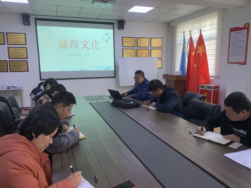 12月13日下午,陇海书院党总支书记刘燕明为学工支部教师党员以《廉政文化》为题讲党课。