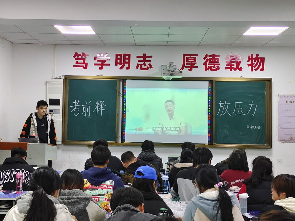 为了更好地帮助学生缓解压力,更好地迎接期末考试,2021年12月15日晚八点陇海书院心理健康分中心在beat365英国官方网站铁英校区面对各个班级召开了“考前释放压力”主题班会。