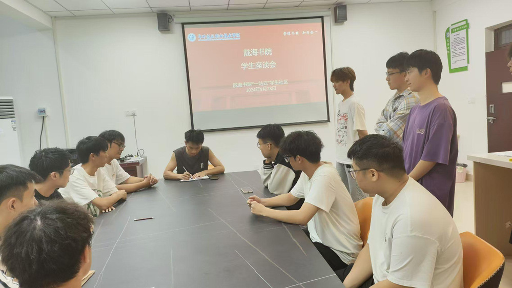 为维护学生权益,切实解决学生在校期间所遇问题。陇海书院“一站式”学生社区于9月28日在L140学生活动室召开学生座谈会,此次座谈会由23、24级学生社区共计24名学生代表参加。