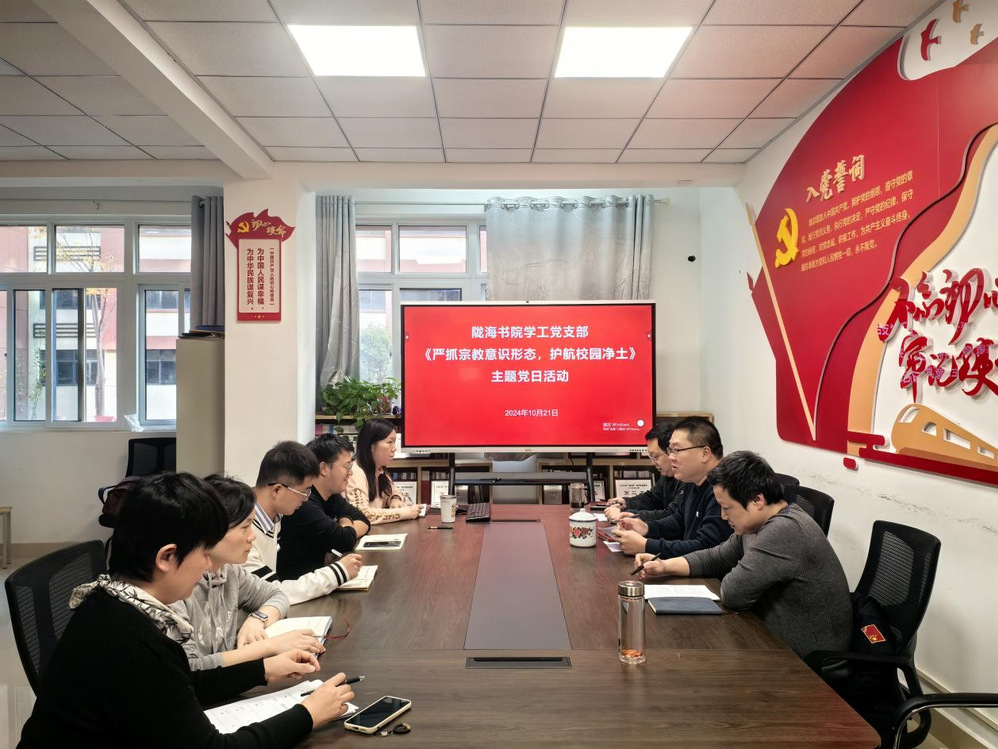 10月21日,陇海书院学工党支部组织全体教工党员在L138党团活动室开展《严抓宗教意识形态,护航校园净土》主题党日活动。