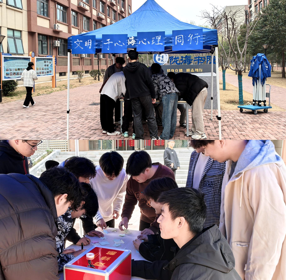 3月7日,陇海书院“一站式”学生社区组织学生在书院楼前小广场开展了“文明于心,心理同行”心理帮扶活动。活动当天,心健同学积极引导过往同学,鼓励大家将内心的心理问题、困惑或烦恼写在便利贴上并投入收集箱。陇海书院“一站式”学生社区将继续秉持育人初心,持续关注学生心理健康为学生们的心理健康保驾护航。