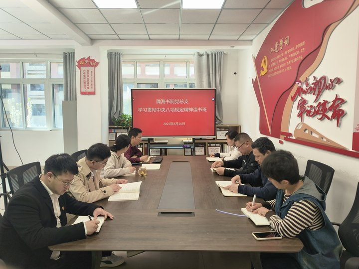 为深入贯彻落实党的二十届三中全会部署,扎实推进作风建设常态化长效化,陇海书院党总支于3月25日至26日成功举办专题读书班,组织全体党员认真学习习近平总书记关于加强党的作风建设的重要论述,以及中央八项规定及其实施细则精神。