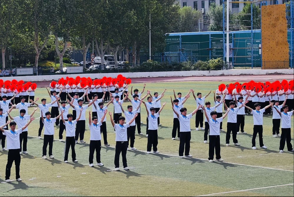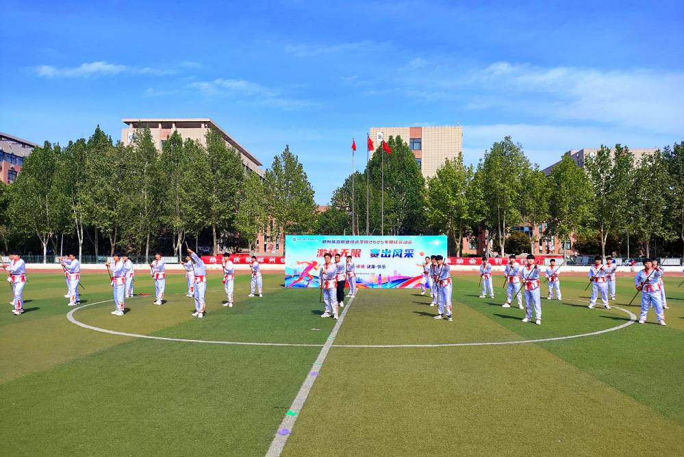在开幕式上,由我院学子组成的进场方阵,步伐整齐、口号嘹亮,尽显青春朝气;大型团体操《我们都是追梦人》和棍棒武术表演《棍武风华》更是惊艳全场,同学们用灵动的舞姿、刚劲的棍法,将青春活力与中华武术的魅力完美融合,赢得了阵阵掌声与喝彩。