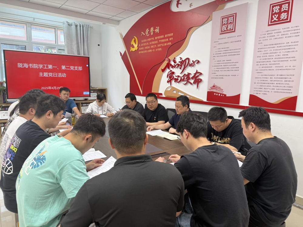 4月29日下午,陇海书院党总支举行“深入贯彻中央八项规定精神学习教育”主题党日活动。书院学工第一党支部、第二党支部全体党员参加。