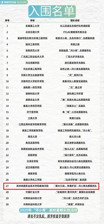 近日,2025年高校“河小青”创新实践行动入围团队名单揭晓,陇海书院“河小青”志愿服务队“碧水行动,净滩护流”生态保护团成功入选。经过评审组筛选及路演答辩综合评议,全国仅有30支方案脱颖而出,陇海书院团队凭借出色表现成功入围。