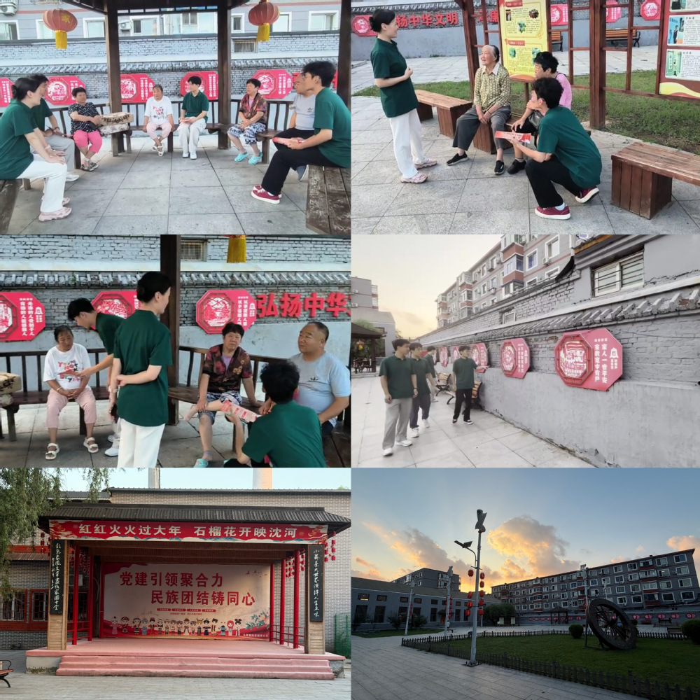 除了参观博物馆,深入社区与少数民族老人交流也是此次实践的重要环节。在辽宁沈阳福陵社区,在辽宁沈阳福陵社区,实践团成员带着预设问题,与满族、朝鲜族老年居民展开亲切交谈。从老人们分享的生活经历、民族习俗传承历程,到邻里日常相处的点滴故事中,成员们不仅获取了书本之外的民俗细节知识,更真切感受到社区内各民族居民互帮互助、和谐共处的良好氛围,深刻体会到“各民族像石榴籽一样紧紧抱在一起”的深刻内涵。