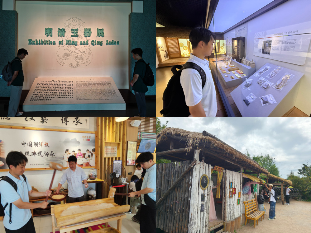 实践之旅首站聚焦河南洛阳,团队先访洛阳民俗博物馆,透过传统农具、婚嫁器具等文物及讲解员介绍,深入了解当地民俗传统与历史演变;随后前往洛阳龙门石窟,在震撼于卢舍那大佛等造像技艺的同时,读懂古都历史厚重与佛文化和中原民俗的交融印记。离开洛阳赴辽宁后,团队相继走进辽宁省博物馆、中国锡伯族博物馆与伪满皇宫博物院,在辽宁省博物馆民俗展区,成员们感受到辽河流域民俗文化的多样性与厚重感;在中国锡伯族博物馆,成员们沉浸式了解锡伯族文化,馆内收藏的西迁文物,生动彰显出锡伯族坚韧的民族精神与深厚的家国情怀;在伪满皇宫博物院,成员们通过回望近代屈辱历史,进一步深化了铭记历史、守护家国的责任认知;抵达吉林后,团队去到延边博物馆切身感受延边灿烂的民俗文化和厚重的历史底蕴,收获颇丰,增强了团队对中华民族多元一体文化的认同感;团队接着在图们市博物馆通过实物、图片等了解当地历史与边境发展,在朝鲜族民俗园,通过精致的民居模型、绚丽多彩的传统服饰等丰富展品,沉浸式体验朝鲜族的生活智慧与艺术审美,直观感受其独特而深厚的文化魅力。