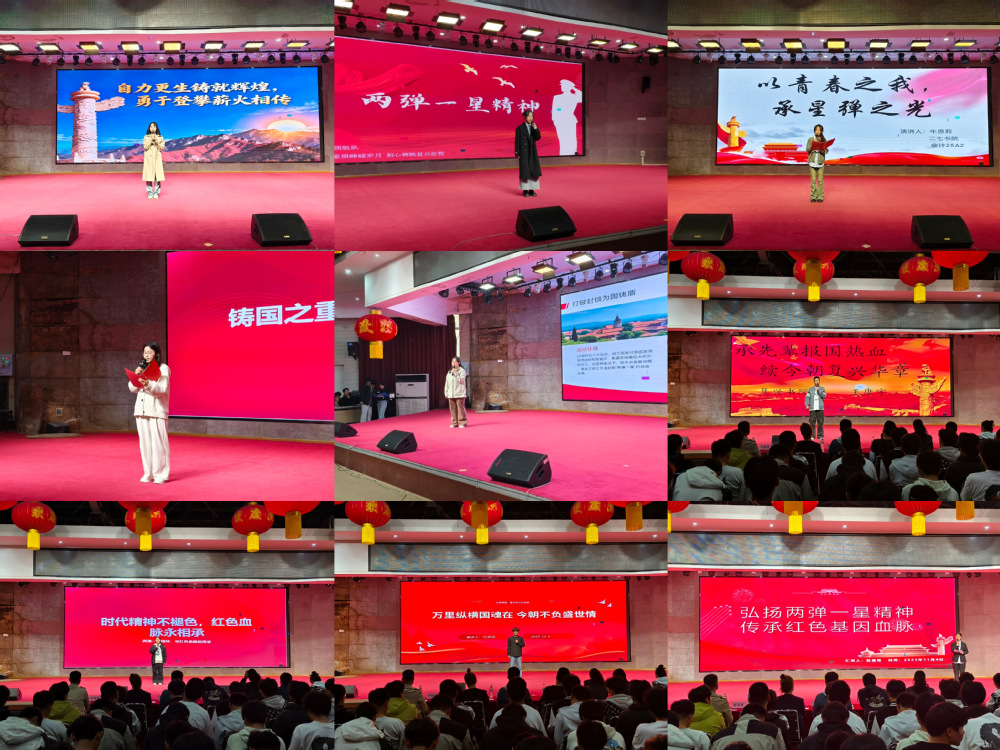 为大力弘扬“两弹一星”精神,引导广大青年学生传承红色基因,汲取奋进力量,11月4日下午,陇海书院于大学生活动中心举办“弘扬两弹一星,传承红色血脉”主题演讲比赛。校团委相关老师、各书院负责人及育人导师出席比赛并担任评委。