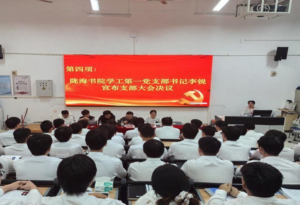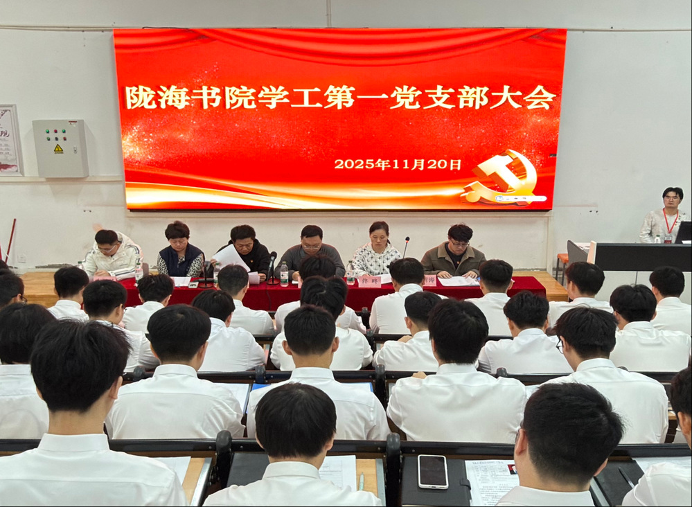 根据陇海书院学工党支部发展党员工作计划,11月20日,陇海书院学工第一党支部在7124教室隆重召开支部大会,专题讨论戴博丞等46名同学发展为中共预备党员事宜。学工第一党支部6名正式党员、46名发展对象参会,党支部书记李锐主持会议。