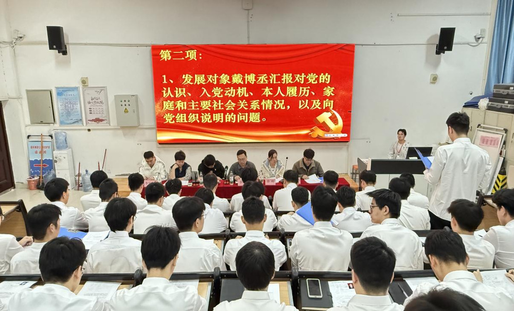 党支部书记李锐同志当场宣布支部大会决议:经支部大会讨论和无记名投票表决,戴博丞等46名发展对象已基本具备共产党员条件,同意吸收为中共预备党员。李锐书记向新接收的预备党员表示热烈祝贺,并提出三点殷切期望:一是筑牢思想根基,深学细悟党的创新理论,厚植家国情怀,始终牢记为人民服务的根本宗旨;二是锤炼过硬本领,将专业学习与实践锻炼紧密结合,校准成长坐标,以过硬素质回应时代要求;三是勇担时代重任,保持锐意进取的精神状态,立足岗位善作善为,以青春之我、奋斗之我书写民族复兴的时代答卷。