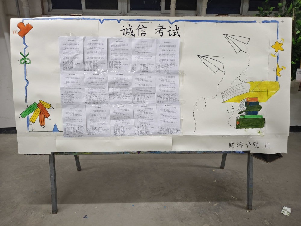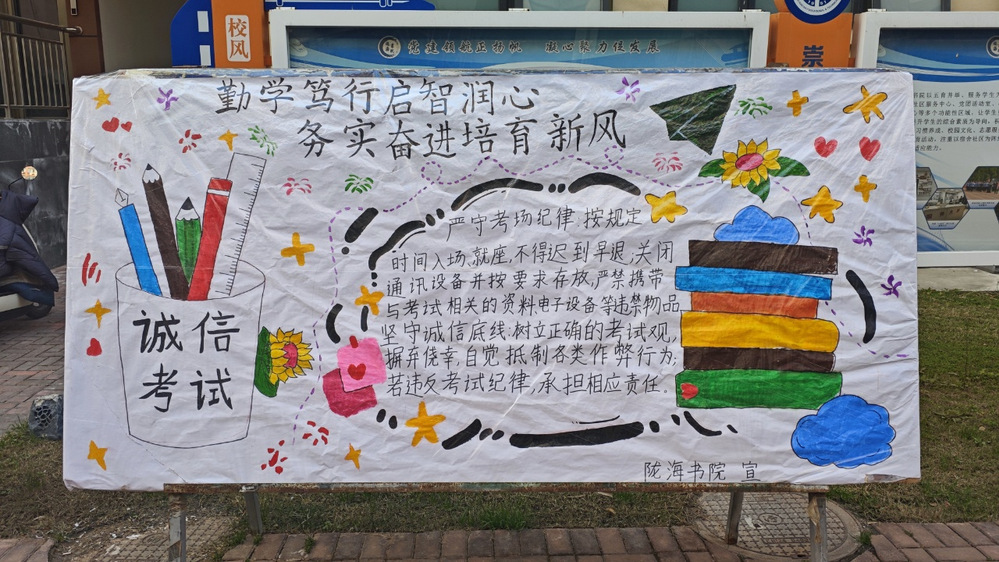 为深入贯彻落实立德树人根本任务,深化学生诚信考试认知,营造公平公正的考试氛围,书院近期以期末考试为奇迹,围绕“诚信应考守初心 笃行向善育学风”主题,开展诚信考试教育活动,引导全员学子以诚信为本,筑牢学风考风防线。