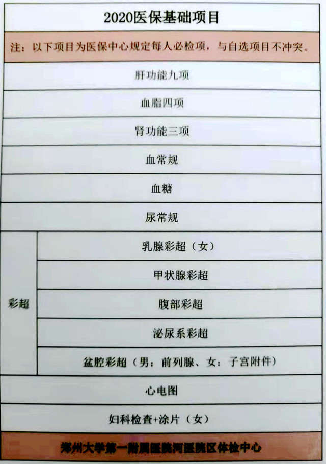 8.本单位为医保体检单位,除基础项目外,体检当日进行自选项目的选择,体检项目见后附:医保选项表。