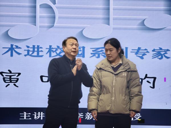讲座的互动环节将现场气氛推向高潮。李新现邀请师生上台,进行一对一指导。这种“理论阐释+现场示范”的立体化教学模式,使在场师生直观感受到审美意识对演唱表现力的决定性作用。他对几名大学生合唱团学生的演唱进行了现场指导,从技术、情感、文化和审美等多个维度,系统阐述了中国声乐的艺术表达体系。一位参与互动的学生表示:“李老师的指导让我恍然大悟,原来一个小小的音色调整就能完全改变歌曲的表现力,这种收获是单纯自己练习无法获得的。”