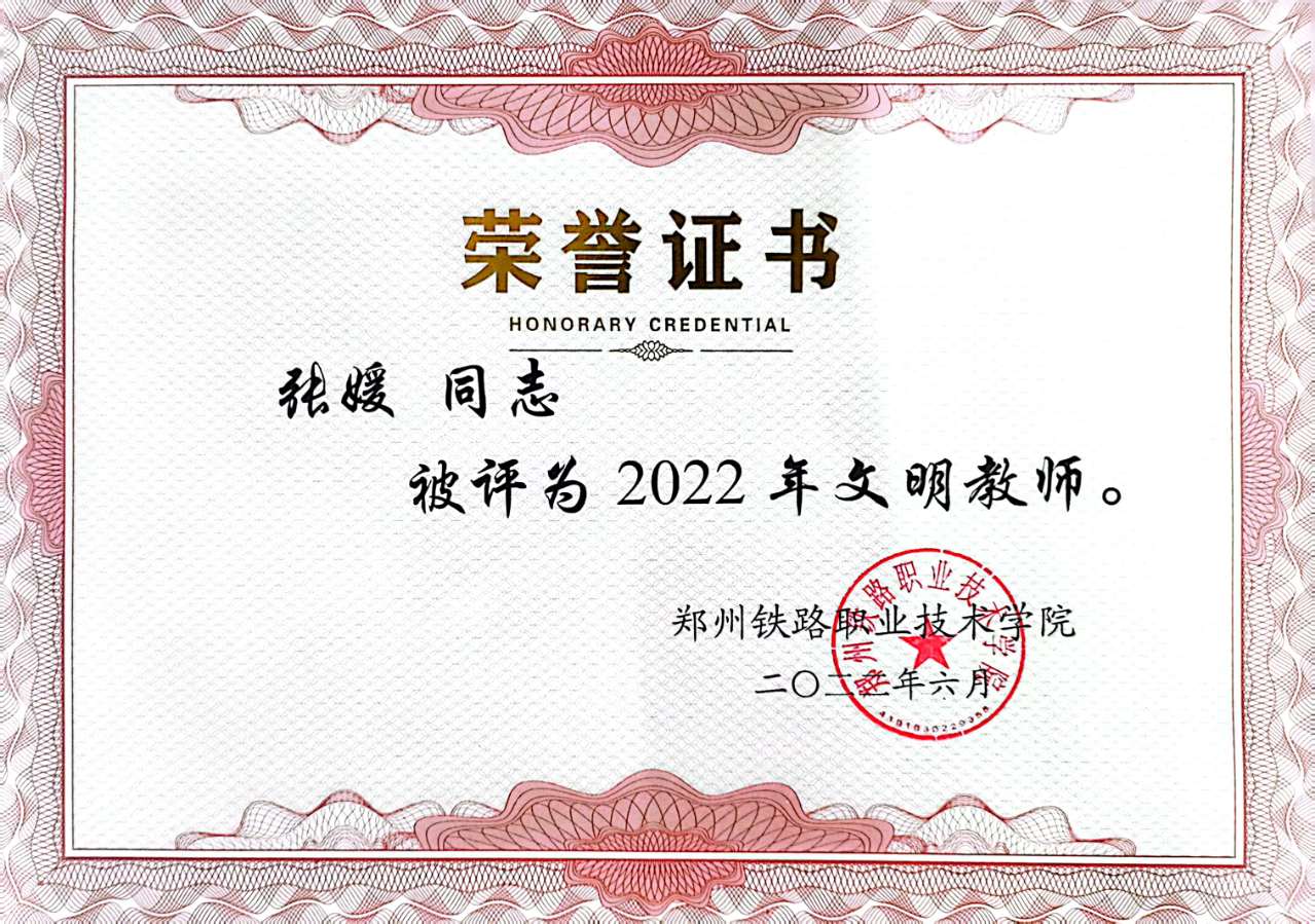 2022年度学校优秀教师----张媛