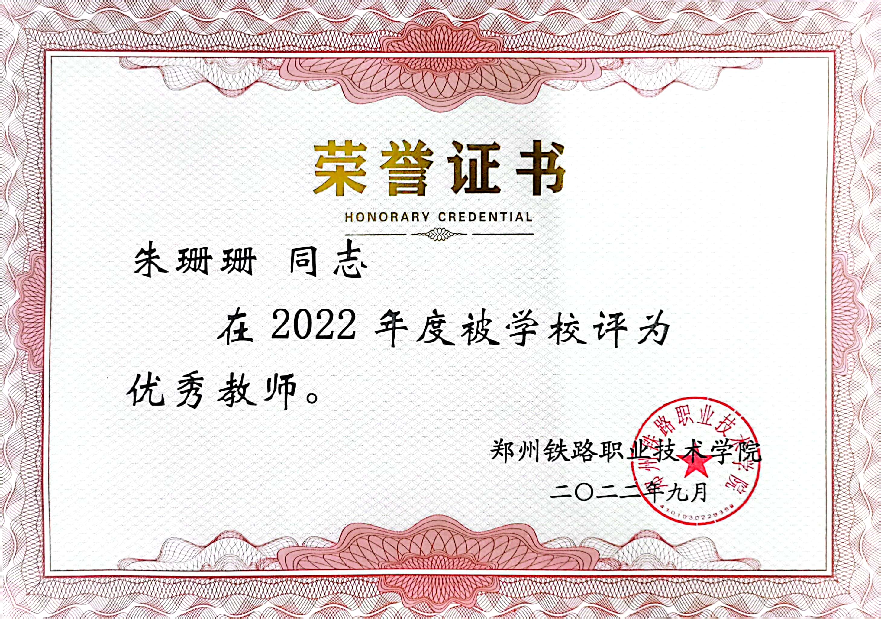 2022年度学校优秀教师----朱珊珊