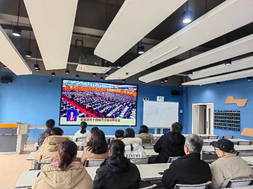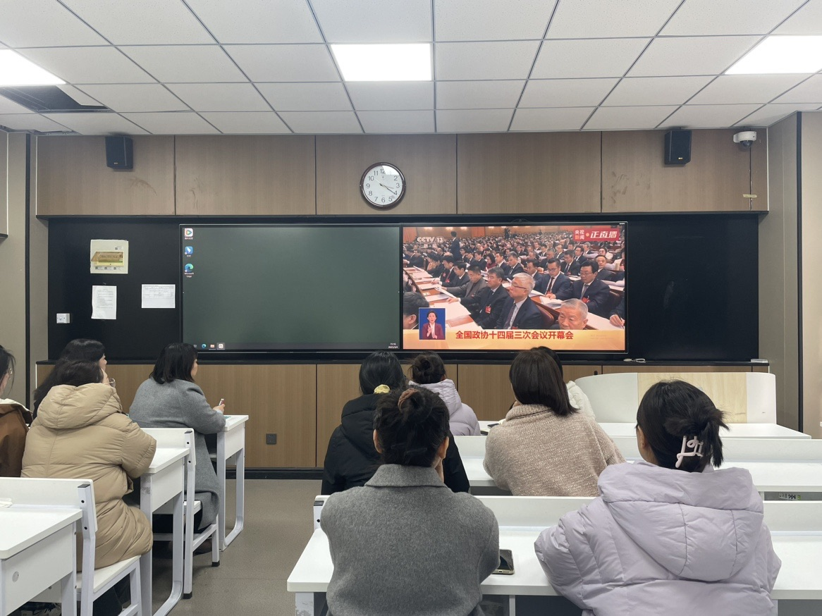 为第一时间学习领会全国两会精神,基础教学部党总支高度关注两会盛况,组织教师通过观看网络实况直播,学习两会精神。
