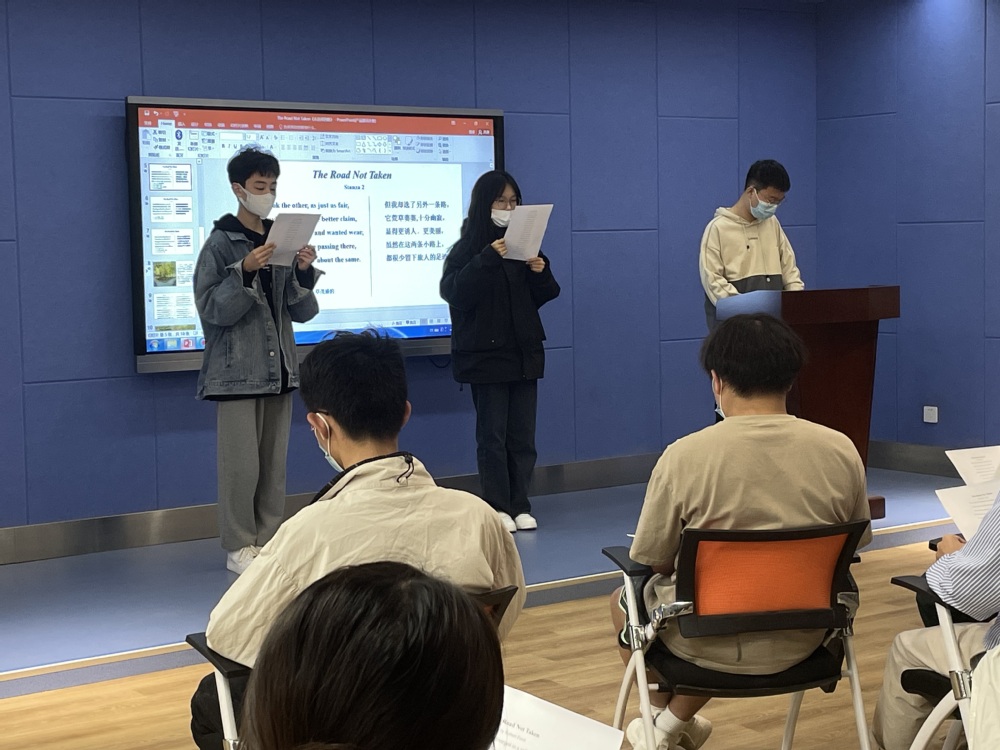 姜老师首先分享了英文诗歌《The Road Not Taken》(《未选择的路》),诗歌中蕴含的哲理给大家留下了深刻的印象。随后,大家一起学习和讨论了英语词汇小故事、英文歌曲以及一些高频常用词汇在学习和生活中的运用等内容。参与者通过聆听赏析、分组讨论、心得分享等形式进行了口语交流,来自不同社区的参与者也通过活动结识到了兴趣相投的新朋友。活动结束后,参与者们纷纷表示,这样的活动不仅增强了自己的英语听说能力,还锻炼了实践能力。机电一体22A2班邓银杰表示:“英语要想进步,就要大声说出来、与人多交流,英语的学习和运用不仅仅是大学期间应作的事,还是一个需要持之以恒的过程,今后我还会继续积极参加这样的活动。”