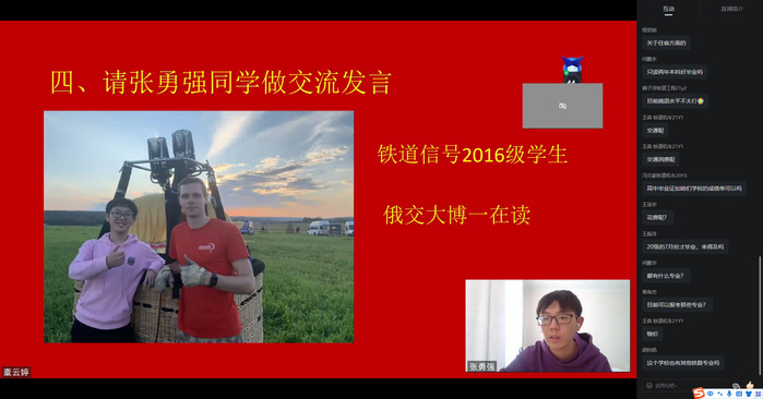 2月28日下午,丝路书院邀请在俄罗斯攻读博士学位的优秀校友张勇强作留学经验分享交流。丝路书院学工人员、在校生代表参加了线上交流。