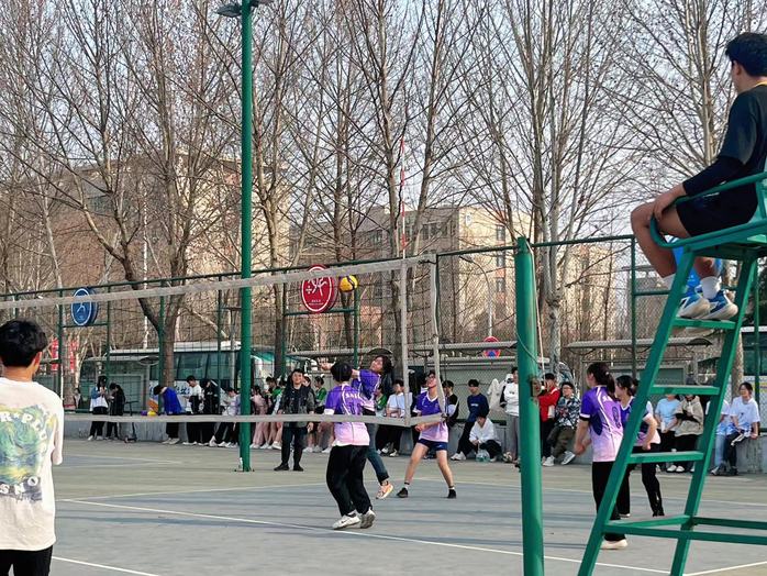 在“三八”国际劳动妇女节到来之际,为丰富师生校园生活,在学校排球场举办庆师生排球联谊赛,给师生们留下一个欢乐难忘的节日回忆。此次别开生面的比赛分三场举行,师生相约友谊第一,比赛第二,纷纷沉浸在青春活力飞扬的赛场上。参赛人员分为教职工队、天使书院队和丝路书院队,三队轮流交替进行比赛。队员们积极热情在排球场上一展英姿,拦截吊球风采洋溢,精彩配合博得阵阵掌声。
