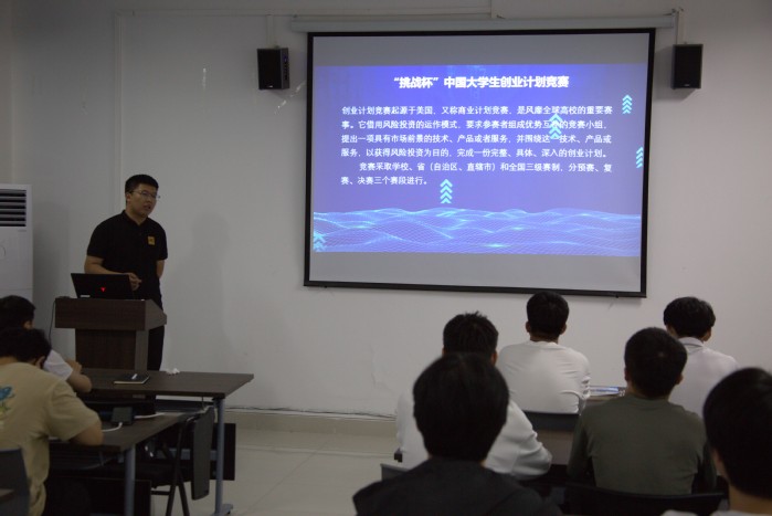 在本次活动中,马力峰同学将就“互联网+”大赛和创新创业等方面进行解读,与同学们分享心得。马力峰同学向同学们介绍了中国“互联网+”大学生创新创业大赛和“挑战杯”全国大学生系列科技学术竞赛。马力峰同学还为同学们总结了历届大赛中组队技巧和选题技巧。
