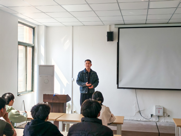 活动中,贾珩同学先对自己的履历进行介绍,他是丝路书院20级物流管理专业学生,作为优秀退役士兵,2020年9月入校,2023年7月毕业并通过专升本考入郑州工程技术学院。他根据在校期间接受培养、自我锻炼、准备专升本考试以及未来就业打算等方面经历,同大家进行分享和交流。同学们积极提问,现场氛围融洽。