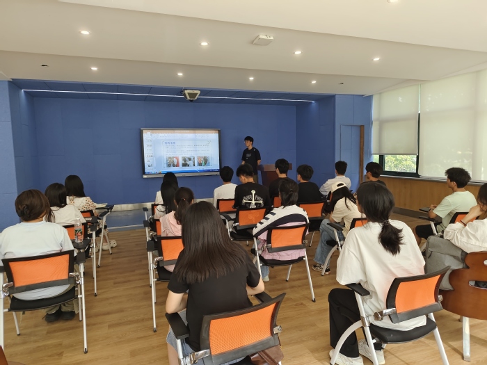 靳丰硕结合自身的学习经历、比赛体会、社会实践经历等,与同学们分享了在专业学习、时间管理等方面的经验和心得体会。