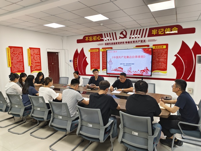 6月4日下午,丝路书院党总支在党员活动室召开党纪学习教育专题会,深入学习《中国共产党章程》《中国共产党纪律处分条例》《中国共产党廉洁自律准则》。