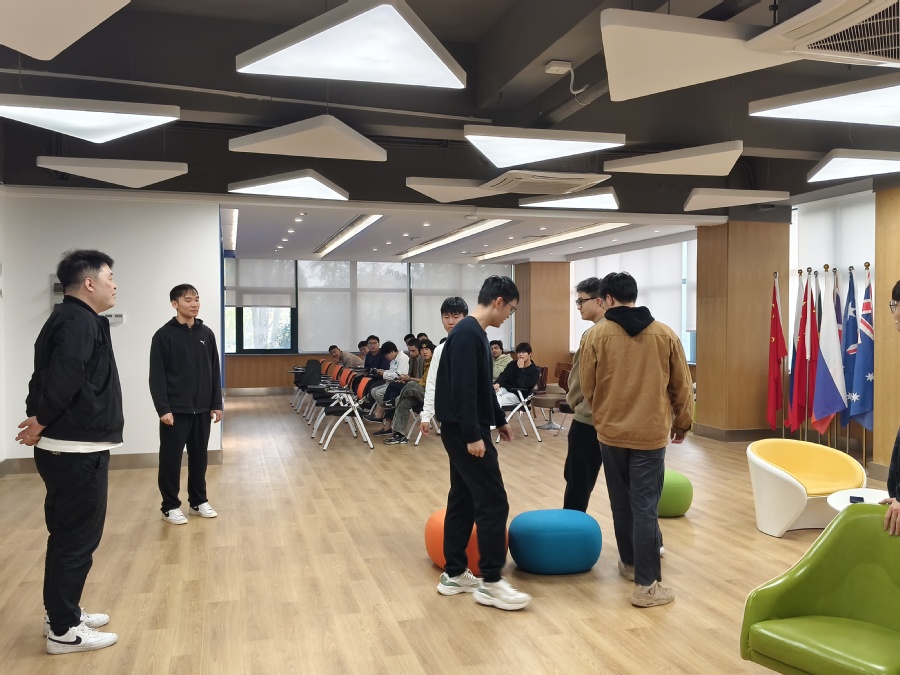 活动刚开始,中外学生分别用英语和汉语进行自我介绍,在轻松愉快的氛围中了解彼此。在“抢凳子”的英文小游戏环节中,学生们锻炼了自己的英语听力能力和反应能力。最后,中外学生分组进行情景对话练习,大胆上台展示并交流学习外语的经验。