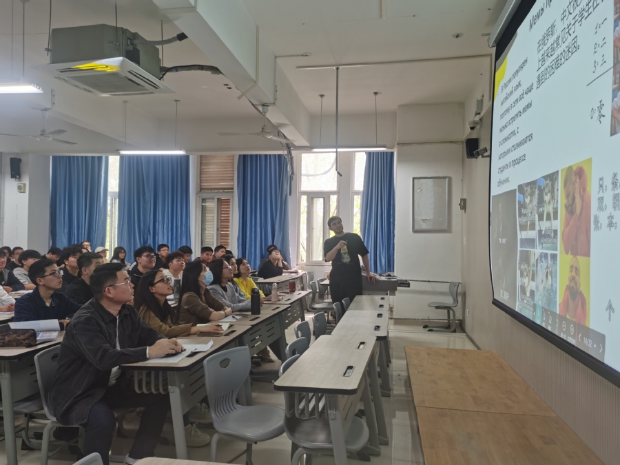 讲座中,瓦列里老师结合中俄网络流行语、影视作品及社交媒体热点,以生动幽默的双语讲解,深入剖析了两国“梗”文化的共性与差异。现场师生积极互动,气氛热烈,在轻松愉快的氛围中加深了对中俄语言文化的理解。