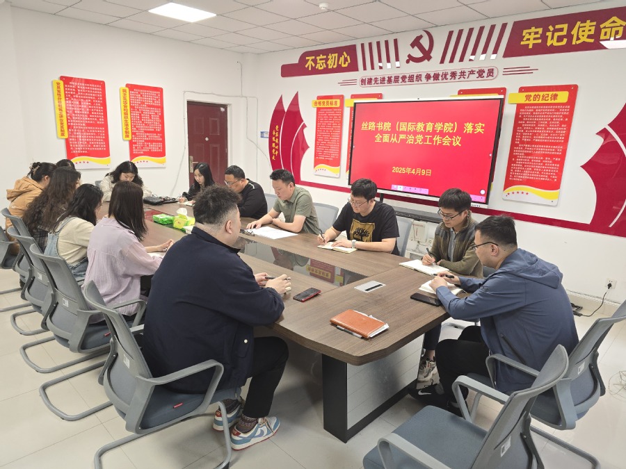4月9日,丝路书院在党员活动室召开2025年度从严治党工作会议,全体党员教师参加了会议。