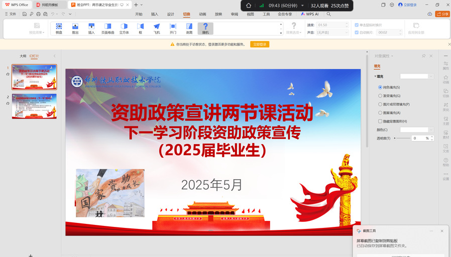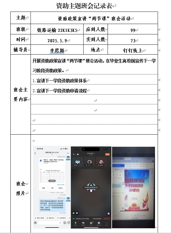 为进一步加深毕业班学生对资助政策的了解,2025年5月下旬至6月初,丝路书院组织全体毕业班召开“资助两节课之毕业生资助政策宣讲主题班会”。
