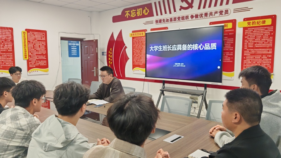 10月9日中午,丝路书院党总支书记王伟以“大学生班长应具备的核心品质”为题,给25级新生班长讲党课。
