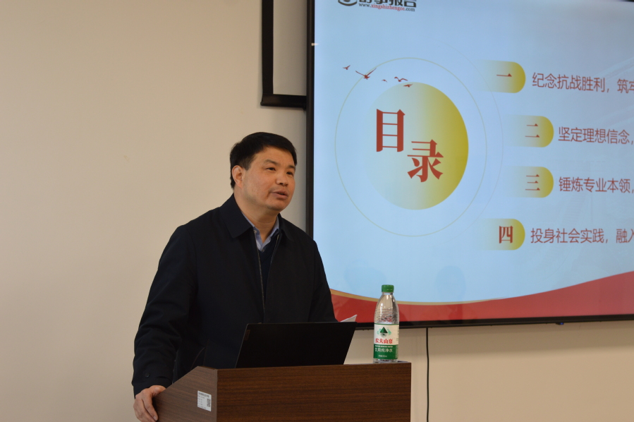 讲座开篇,梁明亮带领学生重温了中国人民抗日战争的壮阔历程。从1931年九一八事变后的局部抗战,到1937年七七事变后的全面抗战,再到1945年抗战胜利的伟大时刻,14年艰难曲折的抗争史如画卷般展开。结合铁路行业历史,梁校长特别提及抗战时期铁路工人冒着炮火抢修线路、运送战略物资的英雄事迹,强调铁路战线始终是抗战后勤保障的重要阵地,无数铁路先辈用鲜血和汗水践行了“天下兴亡、匹夫有责”的爱国情怀。