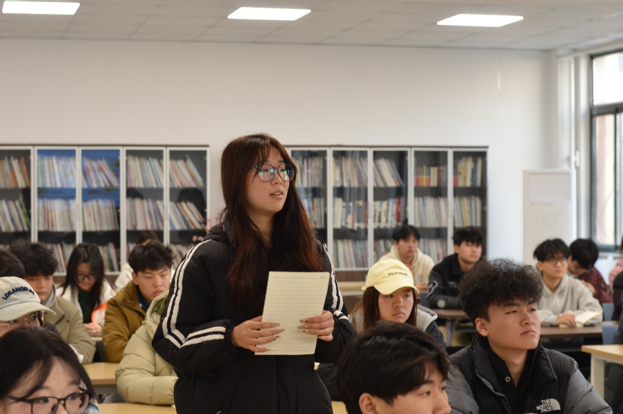 学生们结合自身学习与未来规划进行积极发言。铁道交通运营管理董畅感慨道:“通过学习,我更深刻地理解了抗战精神的内涵。那些在抗战中抢修铁路的先辈们是我们的榜样,作为铁道专业学生,我们要学好专业知识,未来在祖国的铁路建设一线,用过硬本领守护交通大动脉,这就是我们对爱国精神的最好传承。”铁道机车运用与维护专业学生李鹏博表示:“抗战先烈用生命诠释了责任与担当,新时代的我们生逢盛世,更要珍惜当下的学习机会。我会努力掌握机车驾驶与检修技术,未来成为一名合格的铁路工人,让中国高铁跑得更稳更快,为民族复兴添砖加瓦。”