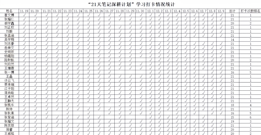 为更好地培养同学们的良好的学习状态,帮助同学巩固课堂内容,梳理知识体系,丝路书院于11月20日至12月9日举办“21天笔记深耕打卡”活动,书院众多学生踊跃参与,活动以钉钉学习打卡群为载体有序推进。